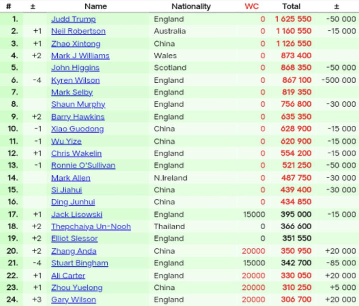 当然等到下赛季小特扣除一些积分,赵心童登顶似乎只是时间问题,此前丁俊晖曾短暂排名世界第1。